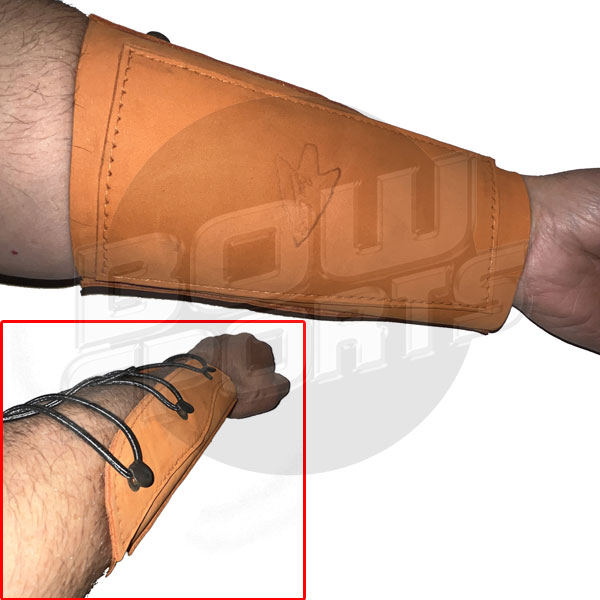 Nubuck leather armguard with suede backing. Colours vary due to nature of product (orangey-tan) Single Adjustable Elastic String Metal Lace Hooks With Elastic Fastening Approx. Size : L18 X W18 CM