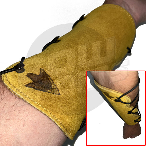 Triple layered suede armguard providing stiffer traditional armguard. Genuine Suede Single Adjustable Elastic String Metal Lace Hooks With Elastic Fastening Approx. Size : L19.5 x W14 CM