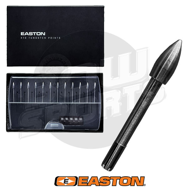 The Easton X10 Ballistic Tungsten Points are designed for use with X10 and ProTour arrow shafts.Available in 100 grain, 100-120 grain and 100-140 grain options, these points offer superior accuracy and durability for competitive archers. The X10 Ballistic Tungsten Points are crafted from high-density tungsten, they provide a compact and consistent weight distribution to enhance arrow performance.Sold in convenient dozen packs, these points offer exceptional value for serious archers looking to improve their shooting precision.Features: High-Density Tungsten: Moves weight forward for optimal arrow flight and enhanced front-of-center accuracy. Optimised for X10 Arrows: Perfectly complements world-class Easton X10 shafts. Enhanced Stability: Improves downrange flight characteristics in crosswinds.